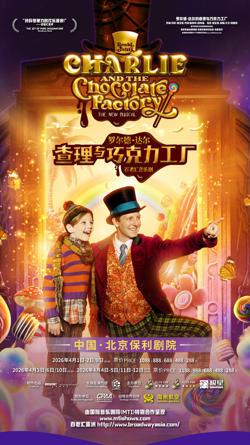 百老汇经典音乐剧《查理与巧克力工厂》北京站将于4月1日在保利剧院正式启幕。